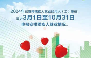 2024年已安排殘疾人就業的用人(工)單位,應于3月1日至10月31日申報安排殘疾人就業情況。